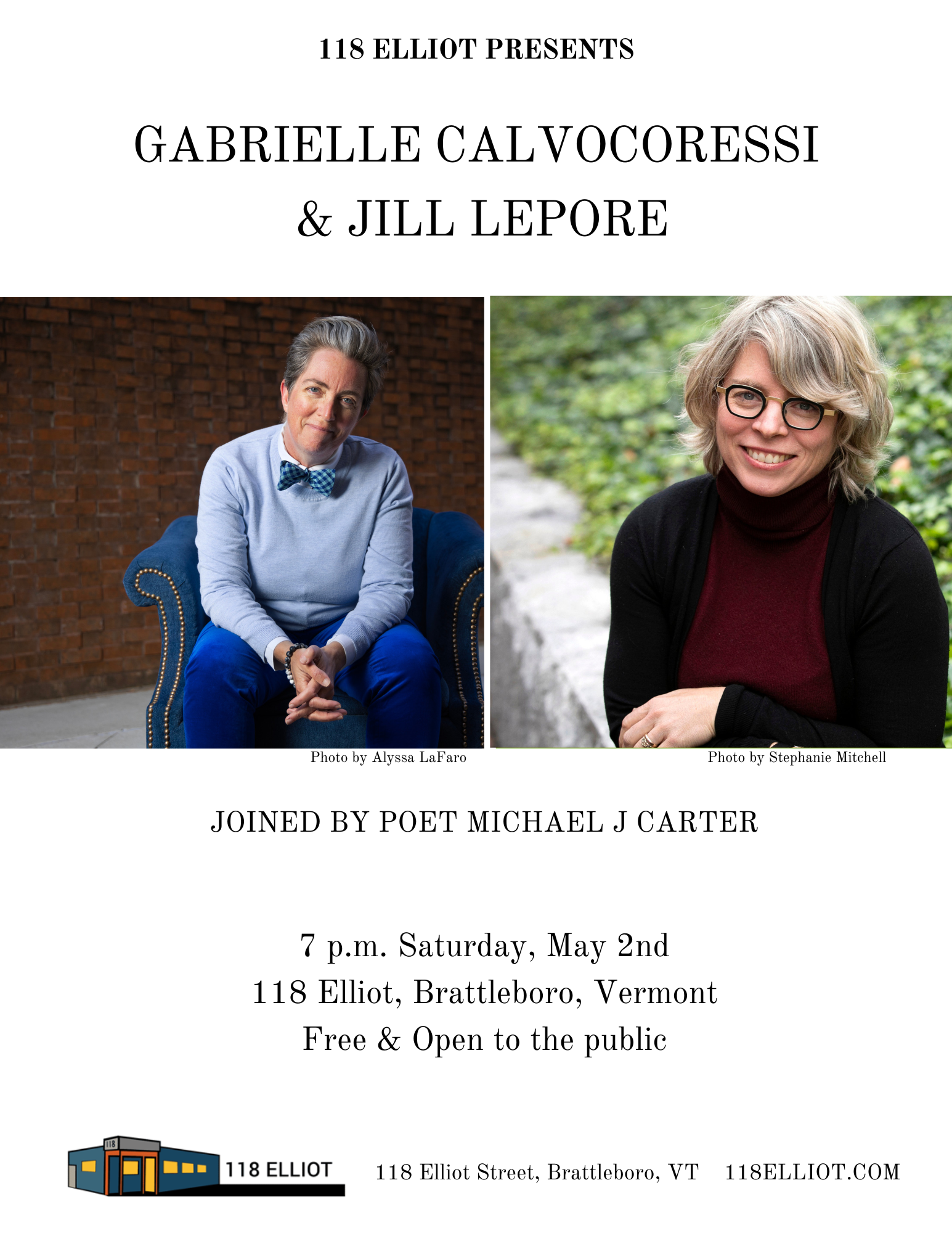 Join us at 118 Elliot at 7 p.m. on Saturday, May 2nd to celebrate Gabrielle Calvocoressi’s poetry collection, The New Economy, alongside Jill Lepore, with opening poet Michael J Carter. The heart of The New Economy is the wish to meet new neighbors, to open portals of compassion and kindness and radical possibility.